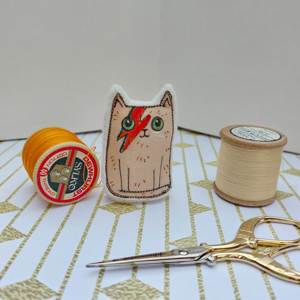 Each kitty is made from painted fabric, sewn onto felt and stuffed. They Measure approx 5cm tall and can stand independently.